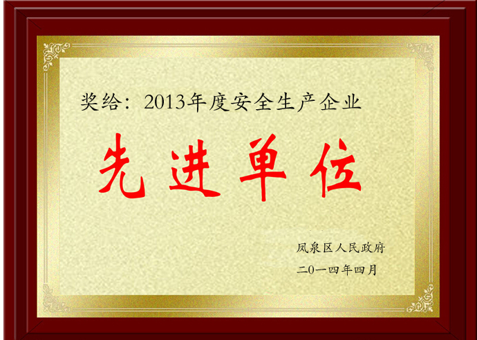 2013年度我廠在全區(qū)進(jìn)行的安全生產(chǎn)評(píng)比當(dāng)中獲得