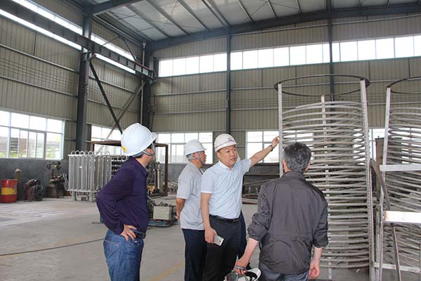 2016年5月21日,評審團一行到我公司開始為期兩天的復查會,向總、張工、李工及公司技術部、質檢部等相關人員全部到會,進行了簡短的座談之后,到車間參觀了車間在產半成品、焊接實驗室、焊材庫、汽化器制作車間等,相冊記錄了整個座談、參觀、指導過程;