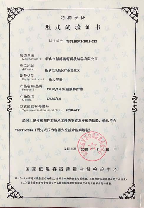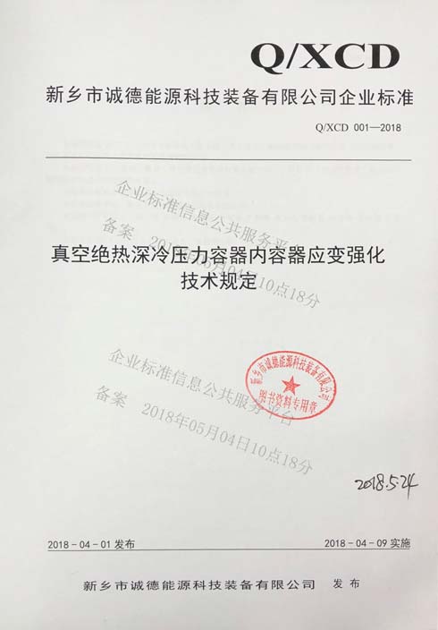 我公司奧氏體不銹鋼應變強化壓力容器試驗從2014年12月15日啟動以來,公司同鄭州大學特種設備安全研究中心通力合作,歷經三年多終于2018年5月順利完成所有程序,于2018年7月10日通過了國家低溫容器質量監督檢測中心的型式試驗測試,(證書編號:TS7610042-2018-022),并編制了我公司第一份企業標準。今后我們將此項試驗標準用于公司生產制作中,預計每年可節約材料成本近100萬元。