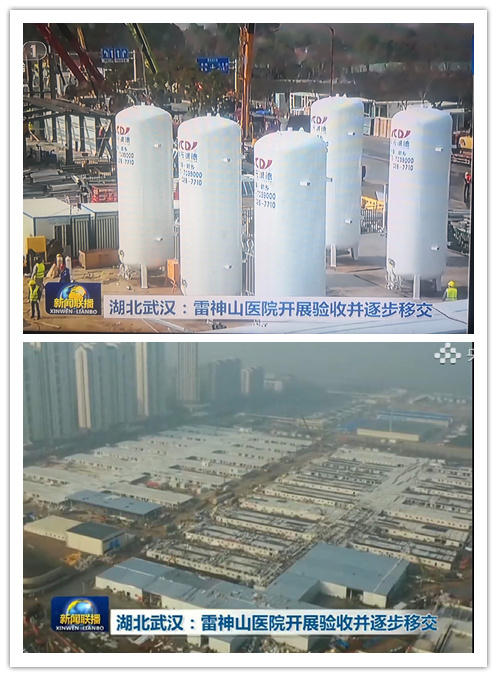2月7日《中央新聞聯播》播出了《湖北武漢:雷神山醫院開展驗收并逐步移交》的消息。雷神山醫院最引人矚目的是六個白色的“大罐子”,他們將承擔整個雷神山醫院的醫療用氧氣供應。而這六個20立方米的儲罐就是河南省新鄉市誠德能源科技裝備有限公司制造生產的!