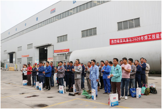2020年9月23日,由鳳泉區總工會、區人力資源和社會保障局聯合主辦,產業集聚區工會聯合會和新鄉市誠德能源科技裝備有限公司承辦的“鳳泉區2020年焊工技能競賽”在我公司隆重開幕了。區人大常委會副主任、區總工會主席高運志,區產業集聚區管委會主任趙寶富,區人社局副局長魏向陽出席了本次比賽的開幕式并作講話,誠德公司總經理向文麗致歡迎辭,熱烈歡迎大家的到來。