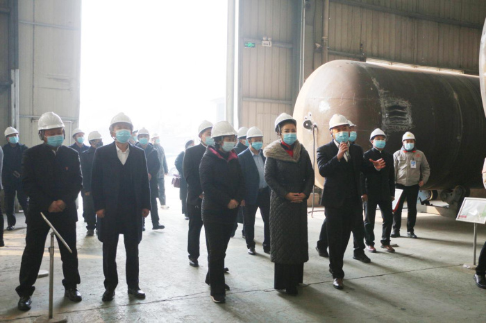 省川渝商會和市工商聯領導一行在誠德公司總經理向文麗的陪同下,參觀了公司的生產車間,并進行了座談。總經理向文麗向大家簡單作了工作匯報,領導在聽取了誠德公司的工作進展情況后,對公司的發展前景持以肯定的態度,對公司應援武漢雷神山醫院液氧儲罐的事跡進行了高度的贊揚,并大力弘揚勞動精神,使大家牢記“偉大出自平凡,英雄來自人民”。隨后對當前工作開展中遇到的問題提出指導性意見,她勉勵大家不畏艱難困苦,致力創業發展,離土離鄉不離黨,高舉黨旗闖市場。