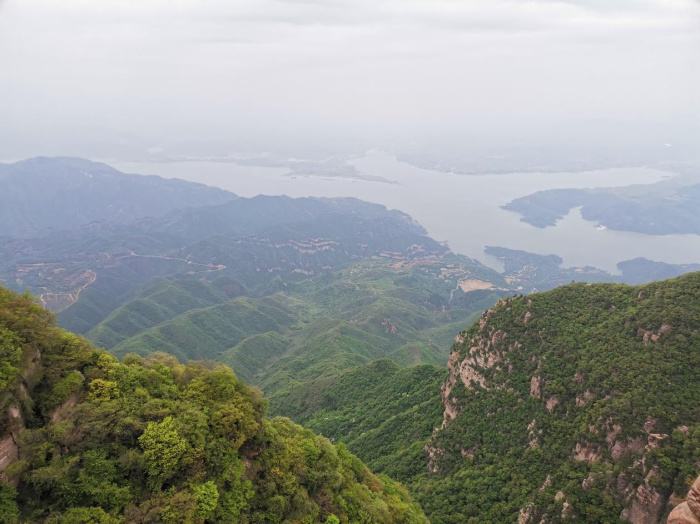 晚上睡了美美的一覺,第二天我們來到了黛眉山。黛眉山位于洛陽市新安縣境內,黛眉山作為我國唯一一座一面環山,三面環水的景區,是一座天然的“沉積博物館”,西望、北瞰、東眺,偉大的母親河的綽約風姿盡收眼底,黃河如練,綿延千里,奔流東去,進八里峽直達小浪底。觀此奇景,你不得不為美麗中國而嘆服!